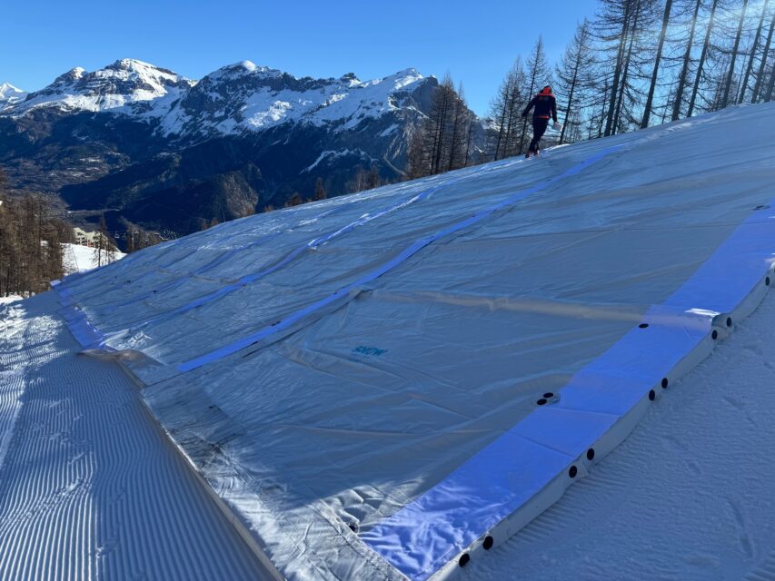 À Puy-Saint-Vincent, la neige ne disparaît pas totalement avec le printemps. La station mise sur le “snow farming”, une technique innovante qui consiste à stocker près de 14 000 m³ de neige. En fin de saison, celle-ci est rassemblée en une impressionnante butte d’environ 72 mètres de long, puis recouverte de matériaux isolants comme la sciure de bois et des bâches géotextiles afin de limiter la fonte durant tout l’été.