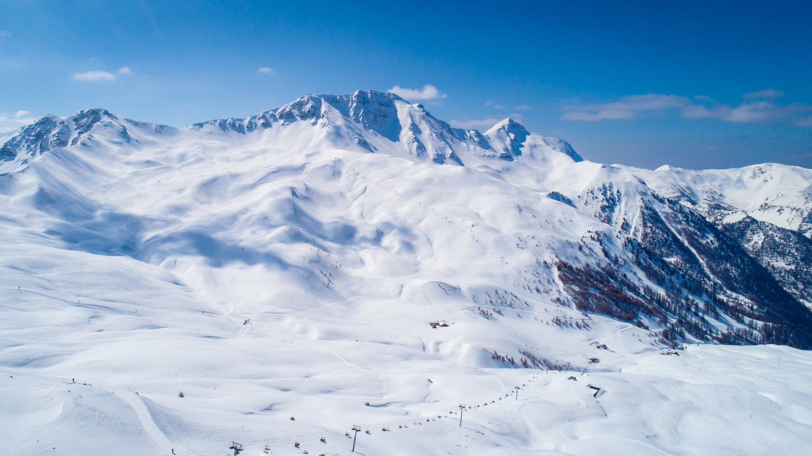 Linking Vars and Risoul, La Forêt Blanche lives up to its name: a sea of fir trees where the trails weave their way through, offering panoramic views stretching all the way to the Écrins. It’s this unique link between two resorts that makes its strength: two atmospheres, two characters, but a single promise: that of escape.