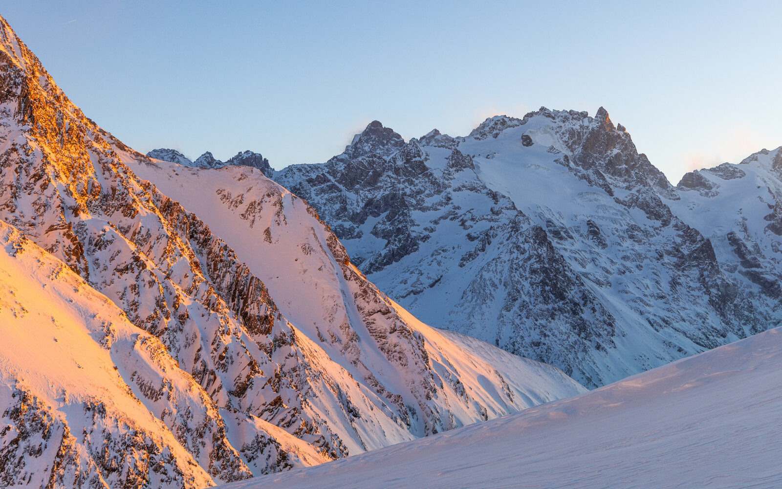 For the last stage, the return to Névache is gentle. The combes offer fine descents, before gradually returning to the larch forests. The Clarée valley draws closer, as peaceful as ever beneath its white mantle. We glide down one last time in this unspoilt winter setting. The finish in Névache brings this tour to a close, leaving an impression of a simple yet profound journey to the heart of the snow-covered Hautes-Alpes.