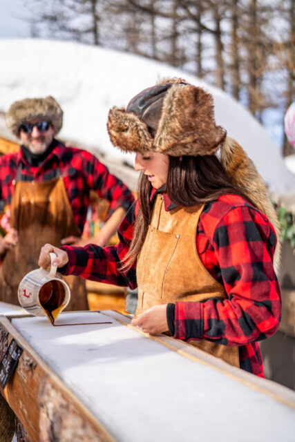 À Montgenèvre, la Cabane Monty fait régner l’esprit trappeur avec rondins, chamallows grillés, digestifs locaux et bonne humeur en bandoulière. Entre les deux stations, la philosophie reste la même : débrancher, rigoler, et se sucrer le bec sans complexe. La montagne retrouve son goût d’enfance, celui du sucre chaud et des joues rougies par le froid.