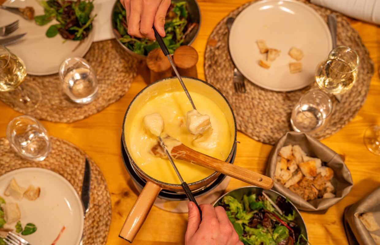La fondue, c’est un peu le feu de camp de l’hiver : on se rassemble autour, on partage, on négocie le dernier morceau de pain. Dans les Hautes-Alpes, elle prend souvent un petit accent local, selon les fromages et le vin utilisés. Une bouchée, et tout va mieux : les journées sportives et le froid qui pique… tout disparaît dans un nuage de chaleur fromagère.