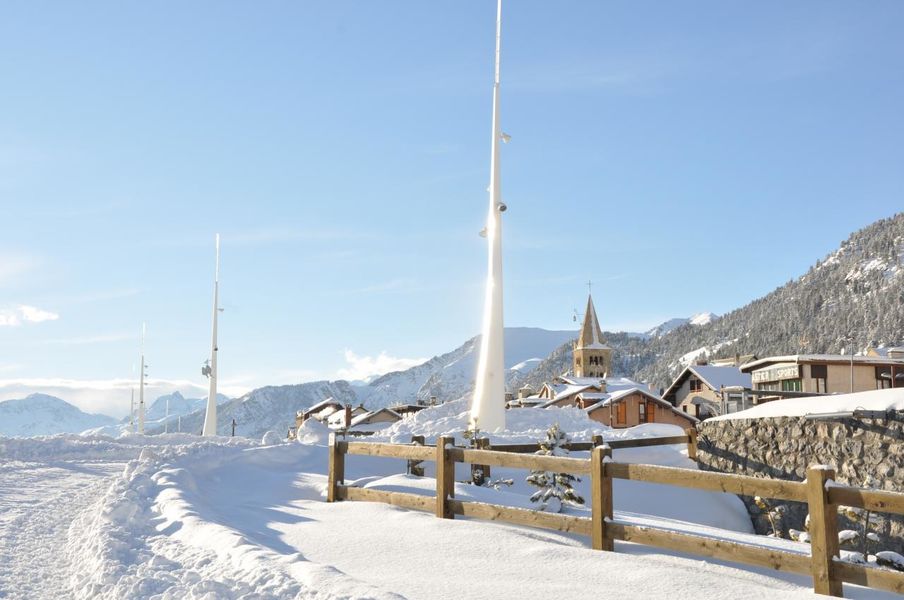 - une terrasse abritée de 6m², pour profitez de l'air frais et de la vue sur les montagnes italiennes, et le village club soleil plus bas.