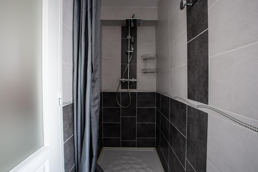 Canapé convertible pour 2 personnes. 1 chambre équipée d'un lit en 160. Salle de bains avec douche.