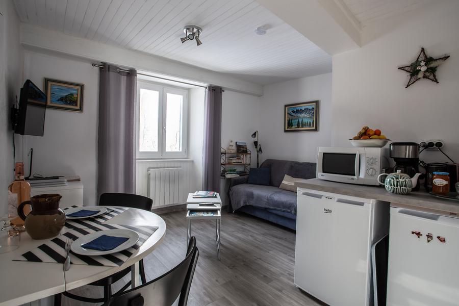 Dans une maison collective, centre ancien, cet appartement de 4 couchages de 35m2, au 2ème étage, permet des séjours, été comme hiver, de durée à votre convenance ( 2 jours minimum).