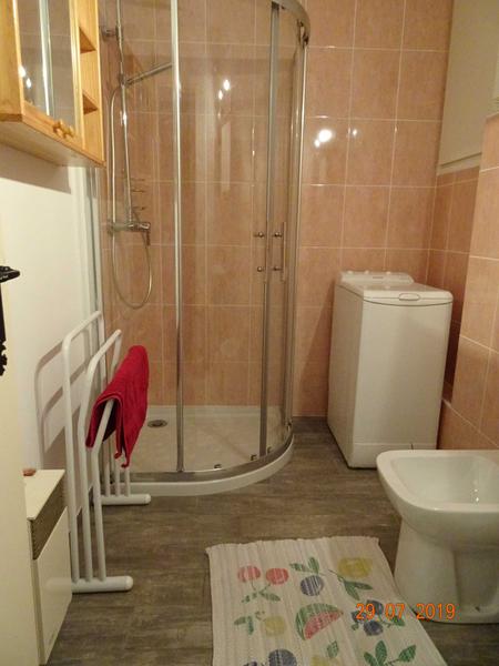 Salle de bain avec douche et lave-linge. WC séparé. Le linge de maison n'est pas fourni.