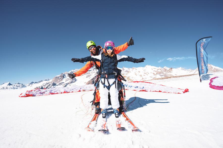Un vol en parapente de +/- 1000m de dénivelé. Décollage à pied ou à ski du sommet des pistes et atterrissage à proximité du front de neige.