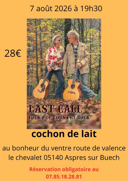 Imaginez l'authenticité de la Folk, l'efficacité de la Pop et l'énergie brute du Country Rock réunies dans un même set. C'est la promesse de Last Call : un répertoire riche qui oscille entre douceur acoustique et rythmes électriques.