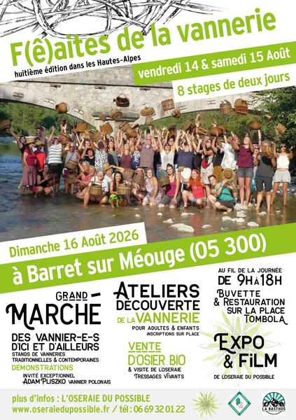 Retrouvez-vous dans la beauté des gorges de la Méouge, au cœur du Parc Régional des Baronnies Provençales pour partager notre septième édition de cette F(ê)aites de la Vannerie. Tressons, tressons, tressons pour faire vivre notre créativé ! Un festival de vannerie à taille humaine pour découvrir et pratiquer la vannerie avec les différents professionnels de L'Oseraie du Possible
