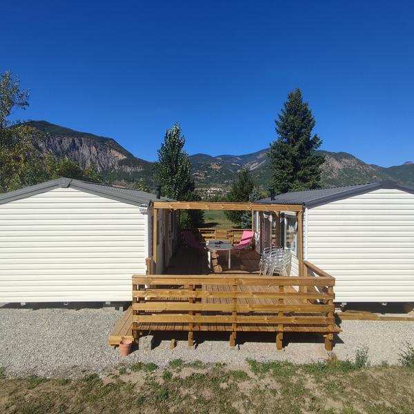 Composé de 2 mobil-homes reliés par une terrasse de 20m2 , sur terrain de 300m2. Parking privatif.