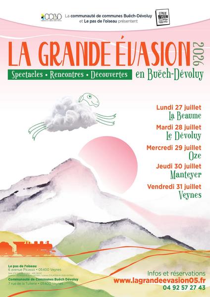 Dans le cadre de La Grande Evasion en Buëch-Dévoluy (découverte du patrimoine & spectacles), un événement organisé par Le pas de l'oiseau et la Communauté de Communes Buëch-Dévoluy :