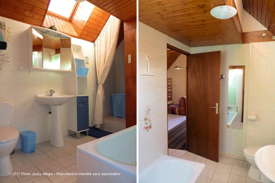 - salle de bain avec baignoire-douche, lavabo et WC