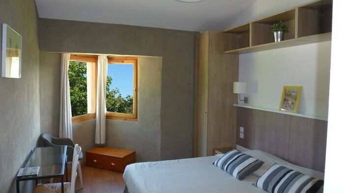 A l'étage, 5 chambres ont été aménagées avec, pour chacune d'elles, une salle d'eau-wc privative. Chacune des chambres possède un lit double, et 3 d’entre elles ont également une mezzanine avec 1 à 2 lits simples. Tous les lits peuvent êtres séparés en lits simples.