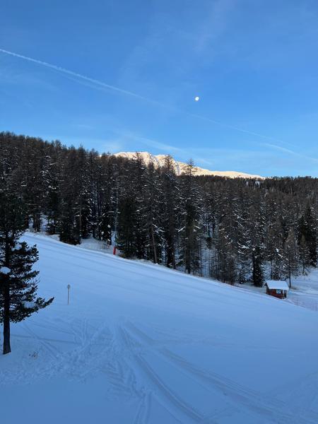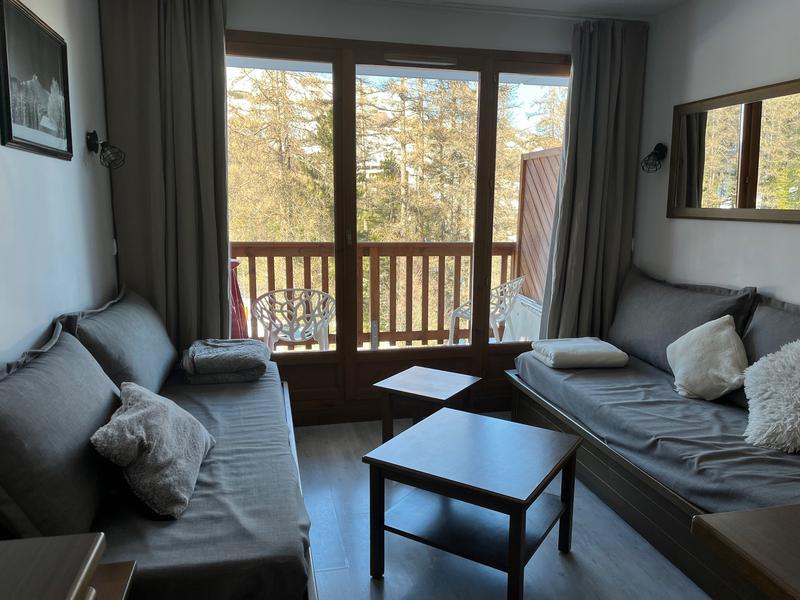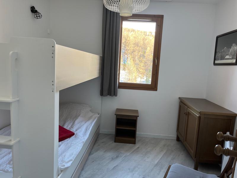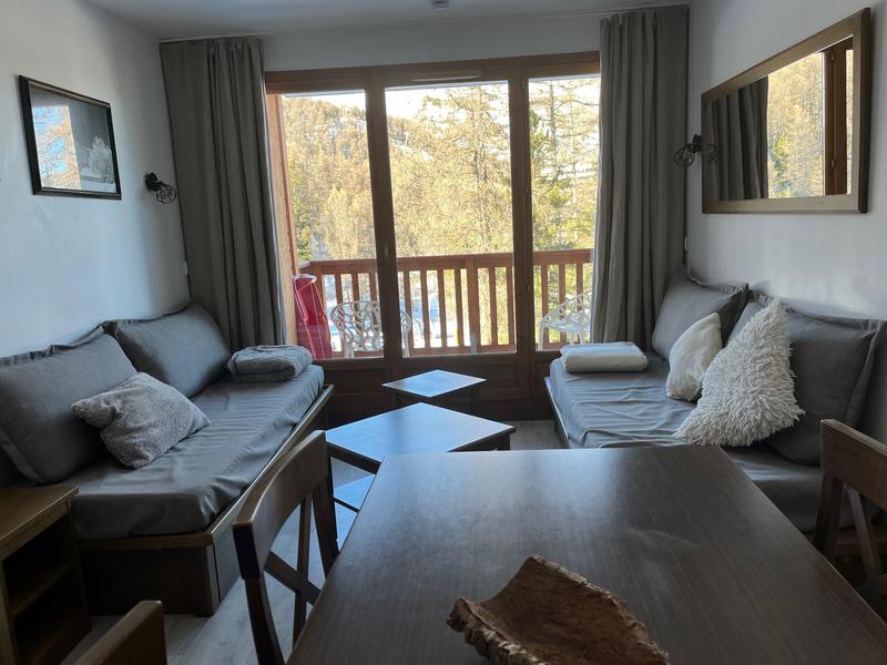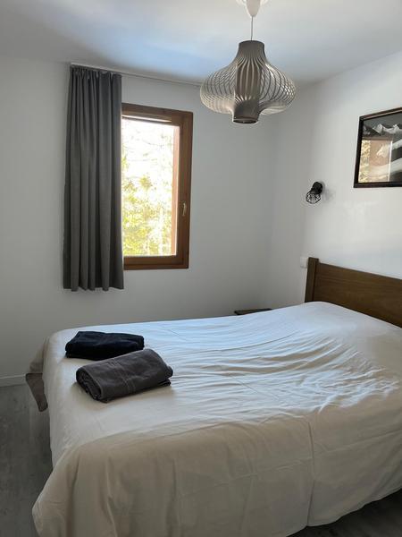 2 chambres avec fenêtres et vue dégagée sur la montagne (pas de coin cabine), l'une avec 1 lit double, l'autre avec 2 lits superposés et 1 lit-tiroir relevable. Séjour avec TV écran plat et cuisine ouverte très bien équipée (grand frigo, lave-vaisselle, four multifonctions, etc.). Grand balcon plein Ouest. Vue imprenable sur la forêt de mélèzes depuis toutes les pièces. Dans le salon, 2 banquettes qui se font face pour davantage de convivialité. Salle de bain en béton ciré avec sèche-serviettes électrique. WC séparé. Parking privatif en sous-sol offert, linge de toilette et linge de lit inclus, lits faits à l'arrivée, ménage de fin de séjour compris dans la location. Appartement très confortable et sur-équipé (appareils à crêpes, à fondue, à raclette, jeux de sociétés, etc)