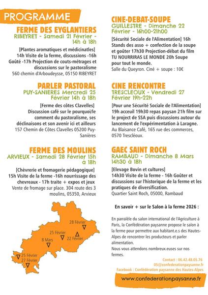 En parallèle du Salon International de l'Agriculture à Paris, la Confédération Paysanne propose le Salon à la Ferme pour permettre aux habitant.e.s des Hautes-Alpes de rencontrer les producteurs et parler alimentation.