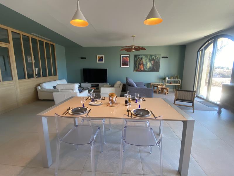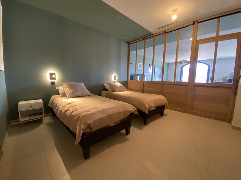 Elle dispose d’une chambre avec un lit double de 160×200, d’une chambre avec deux lits simples et un vrai canapé-lit 160×200 dans le salon. Les espaces de vie sont lumineux et confortables.