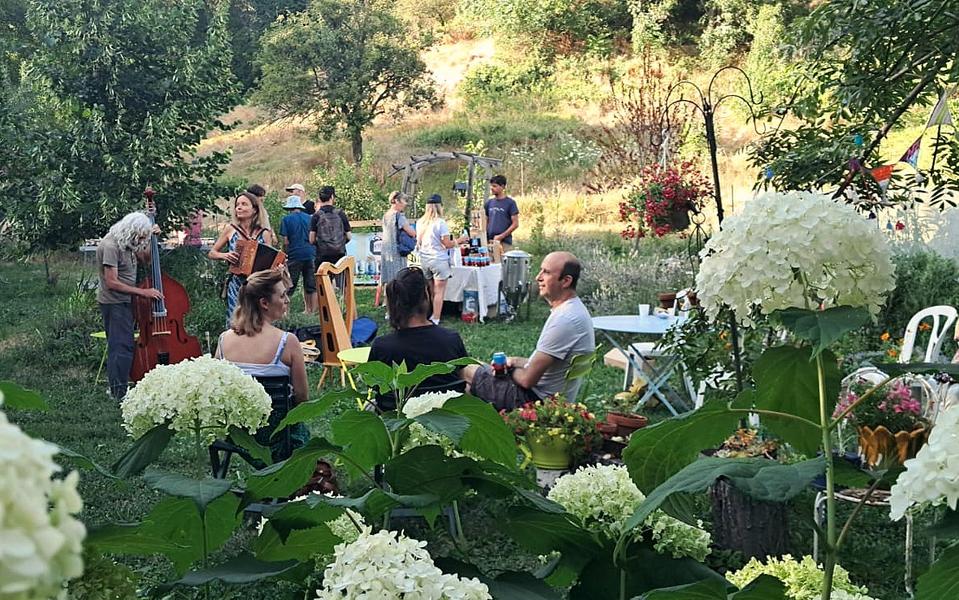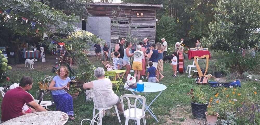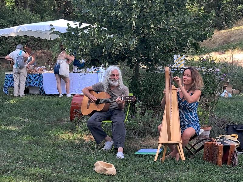 Prenez le temps de vous poser dans ce jardin paisible et ombragé, où vous pourrez profiter des peintures de Florence Marré et les photographies de Thierry Baudrier et rencontrer des producteurs locaux passionnés par leurs métiers. Vous avez la possibilité de vous installez confortablement avec un verre à la main et vous laissez porter par la musique de Anne et Franco, qui joueront le temps du marché de la harpe et de la guitare.