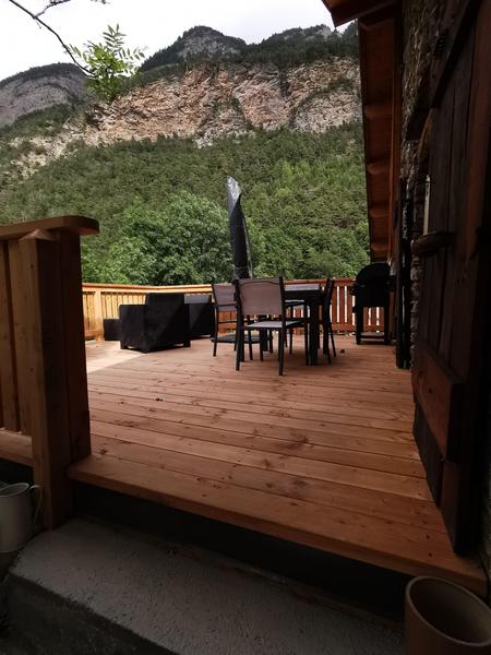 Appartement style chalet de montagne en pierre et bois idéalement situé entre Écrins, Embrunais, Queyras. Vue sur les montagnes. Proche rivière, lacs et balades. Environnement calme, pleine nature.