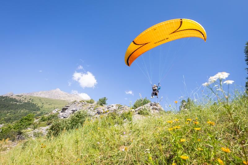 - Vols en biplaces en haute montagne depuis un sommet des Ecrins (Pelvoux, Dôme des Ecrins, Roche Faurio, Pic d'Arsine). La montée se fait encadrée par un guide de haute montagne et le vol est assuré par un moniteur de parapente.