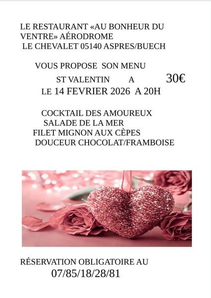 Le restaurant au Bonheur du ventre vous propose son menu spécial St Valentin