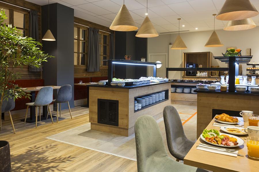 L’établissement propose deux espaces de restauration : un restaurant avec repas servis sous forme de buffet varié, et un second dédié aux spécialités de montagne à la carte, ouvert uniquement durant la saison hivernale.