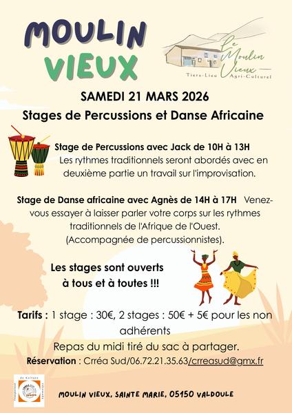 STAGE DANSE AFRICAINE accompagné de musiciens14h à 17h Avec Agnès Maillard