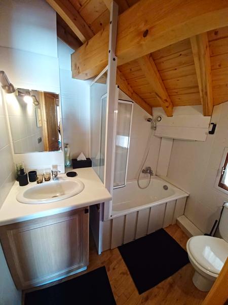 2 salles de bains avec simple vasque. A l’étage équipée d’une baignoire et au rez-de-chaussé équipé d’une douche. Les toilettes sont disposées dans les salles de bain.