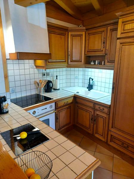 1 cuisine équipée : lave-vaisselle, plaque induction, four, micro-ondes, réfrigérateur/freezer. Petit équipement : machine à café (dosette et filtre), grille-pain, bouilloire, batteur, appareil à fondue, à raclette.