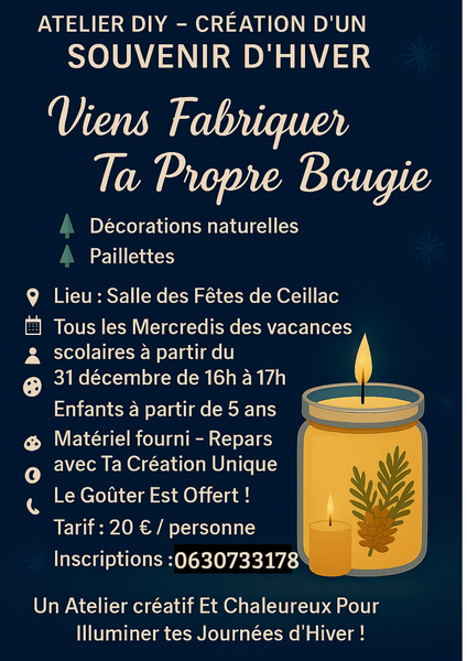 Des paillettes, une couleur et tes petites mains... C'est la recette parfaite pour créer la plus belle des bougies Made in Ceillac bien-sûr ! Le goûter te sera également offert.