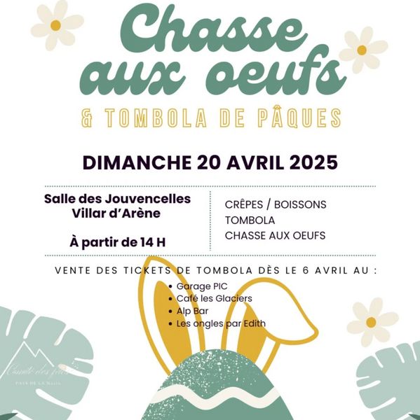 Avis aux petits aventuriers et aux grands gourmands… Cette année, la chasse aux œufs se transforme en véritable quête au trésor dans le canton de Villar-d'Arêne et La Grave ! Enigmes, défis et surprises vous attendent sur un parcours semé d’indices. Ouvrez l’œil, résolvez les mystères et mettez la main sur le trésor chocolaté tant convoité.