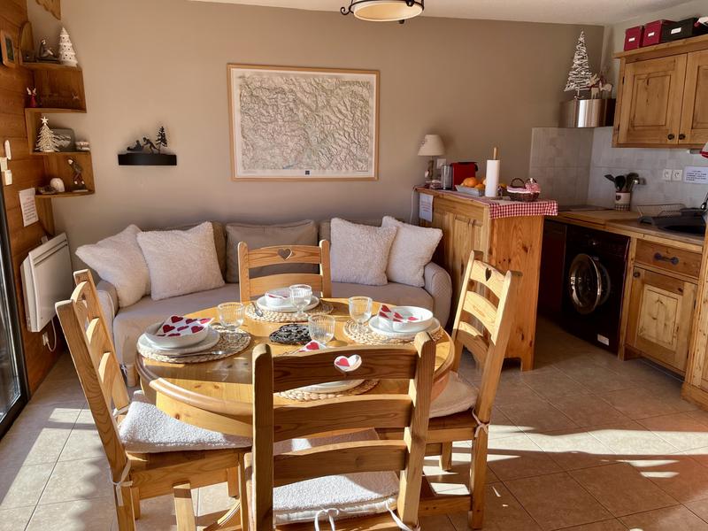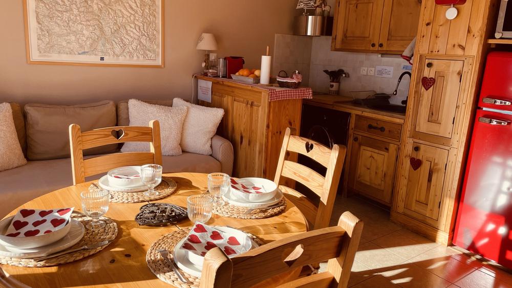 Charmant duplex, très bien équipé, décoré avec goût dans un joli chalet au pied des pistes, exposition sud, balcon avec vue sur le centre de la station, idéal pour des vacances conviviales pour 4 personnes, dans une petite station familiale.