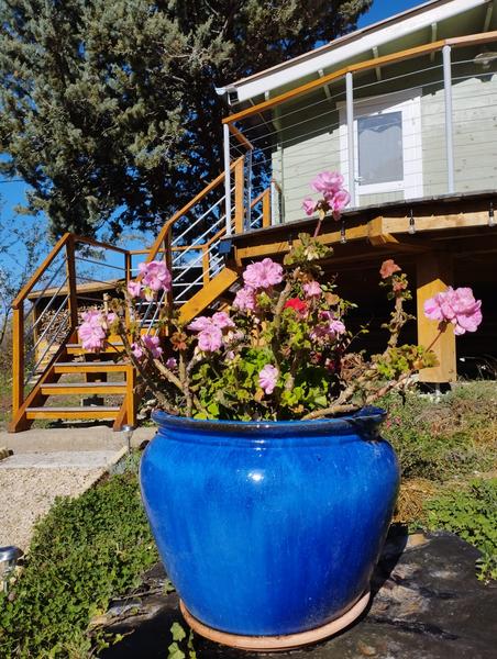 Indépendant, chaque chalet (pour 2 personnes) dispose d'un accès privatif à la terrasse par un charmant petit escalier en bois.
