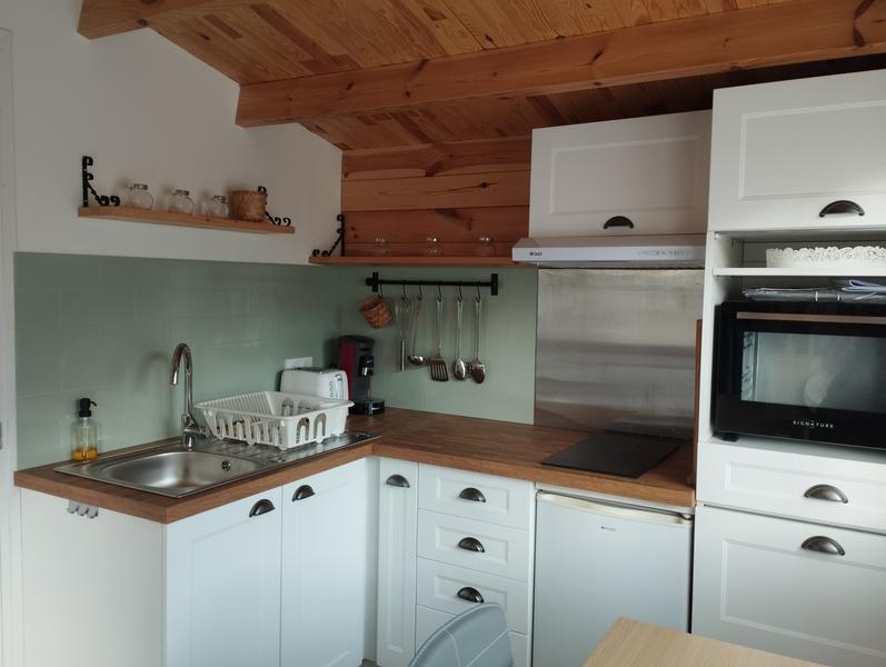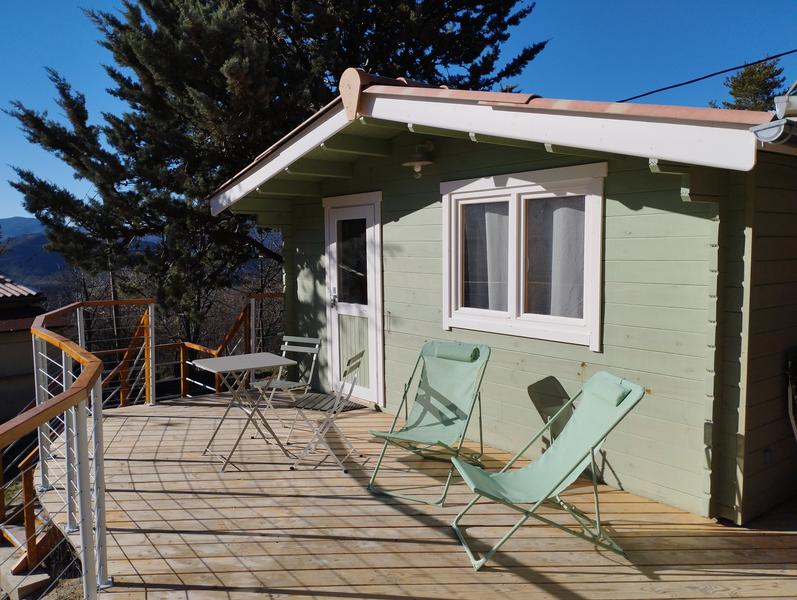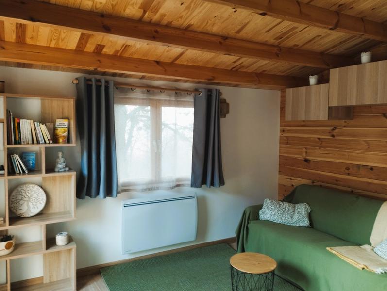 Le chalet Sauge dispose d'une cuisine aménagée toute équipée avec un coin repas, d'un salon avec un canapé lit pour 2 personnes (super confortable !) et d'une salle d'eau avec un agréable espace de douche. Petit cocon de 20m2 aménagé avec goût, idéal pour une parenthèse cocooning en pleine nature. Vous profiterez du salon de jardin privatif sur la terrasse pour déjeuner en admirant la montagne, le coucher de soleil et les étoiles. Souvenirs inoubliables !