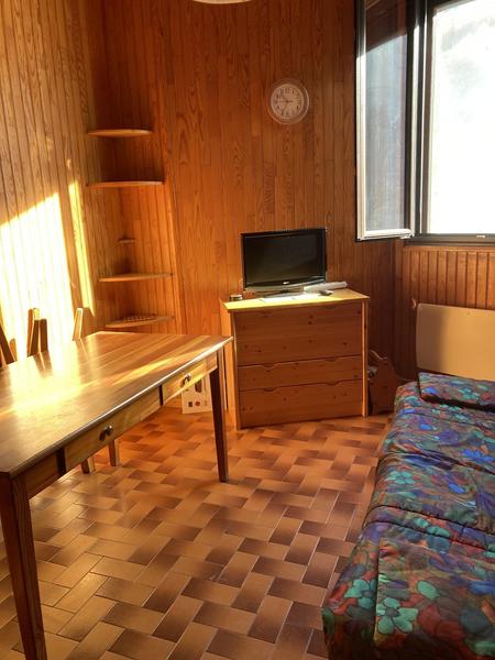Séjour, cuisine, salon avec convertible servant de couchage pour 2 personnes. Salle de bain et WC indépendant.