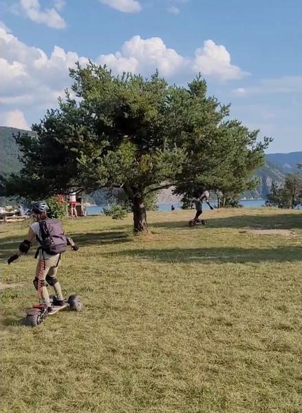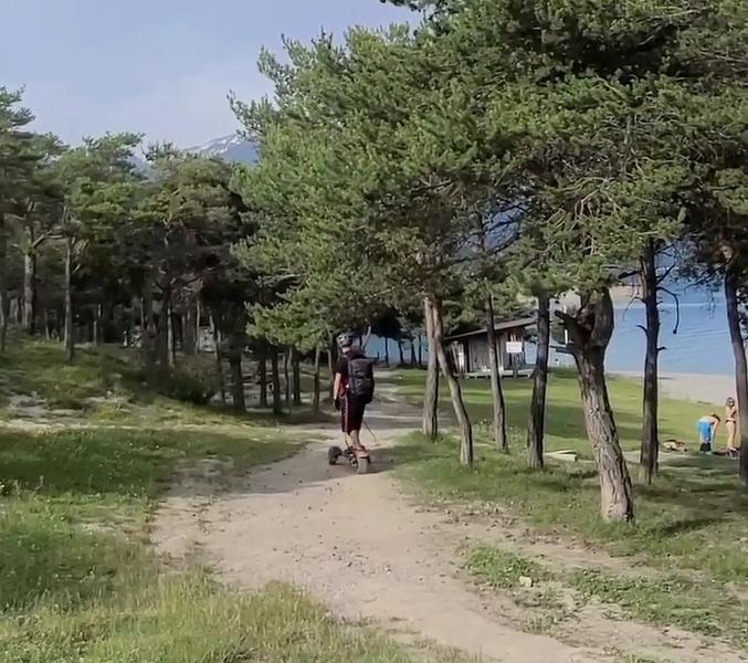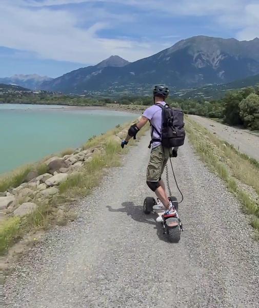 Skate Évasion vous propose à la location le STERNBOARD. Venez vous balader au bord du lac de manière originale avec ce skateboard à trois roues, accessible à tous grâce à sa canne.