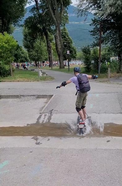 Facile à prendre en main grâce à sa canne amovible, qui vous aide à trouver votre équilibre. Son système à trois roues, avec moteur dans la roue arrière et amortisseurs sur chacune d’elles, améliore grandement sa motricité.