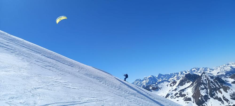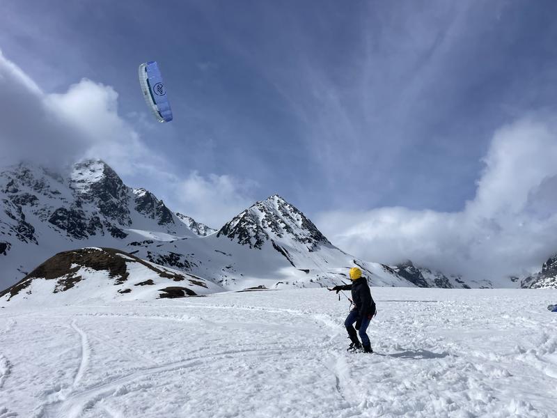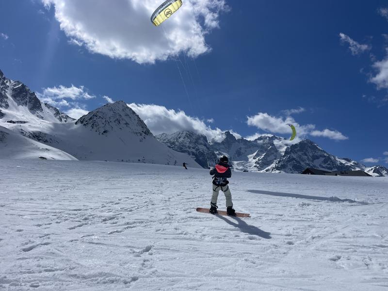 Dès que la neige tombe sur les montagnes, parfois en novembre et jusqu'à la disparition totale de la neige, Rodolphe vous accompagne dans votre apprentissage dans des lieux uniques où se rencontrent les vents indispensables à la pratique du Snowkite.