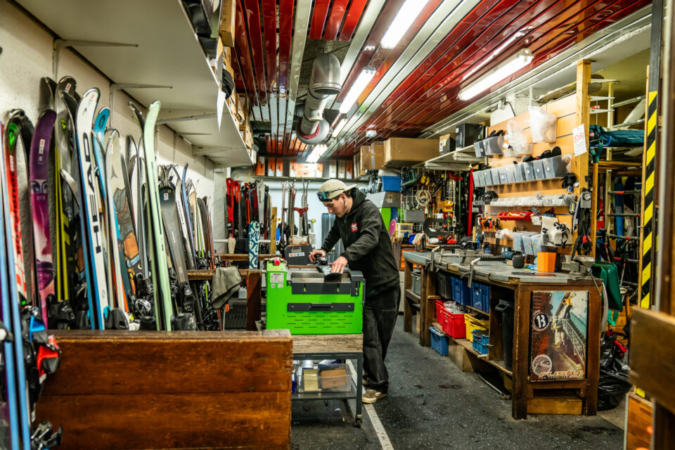 Affilatura delle lamine, sciolinatura meticolosa, regolazione degli attacchi: ogni dettaglio conta per garantire una discesa perfetta.