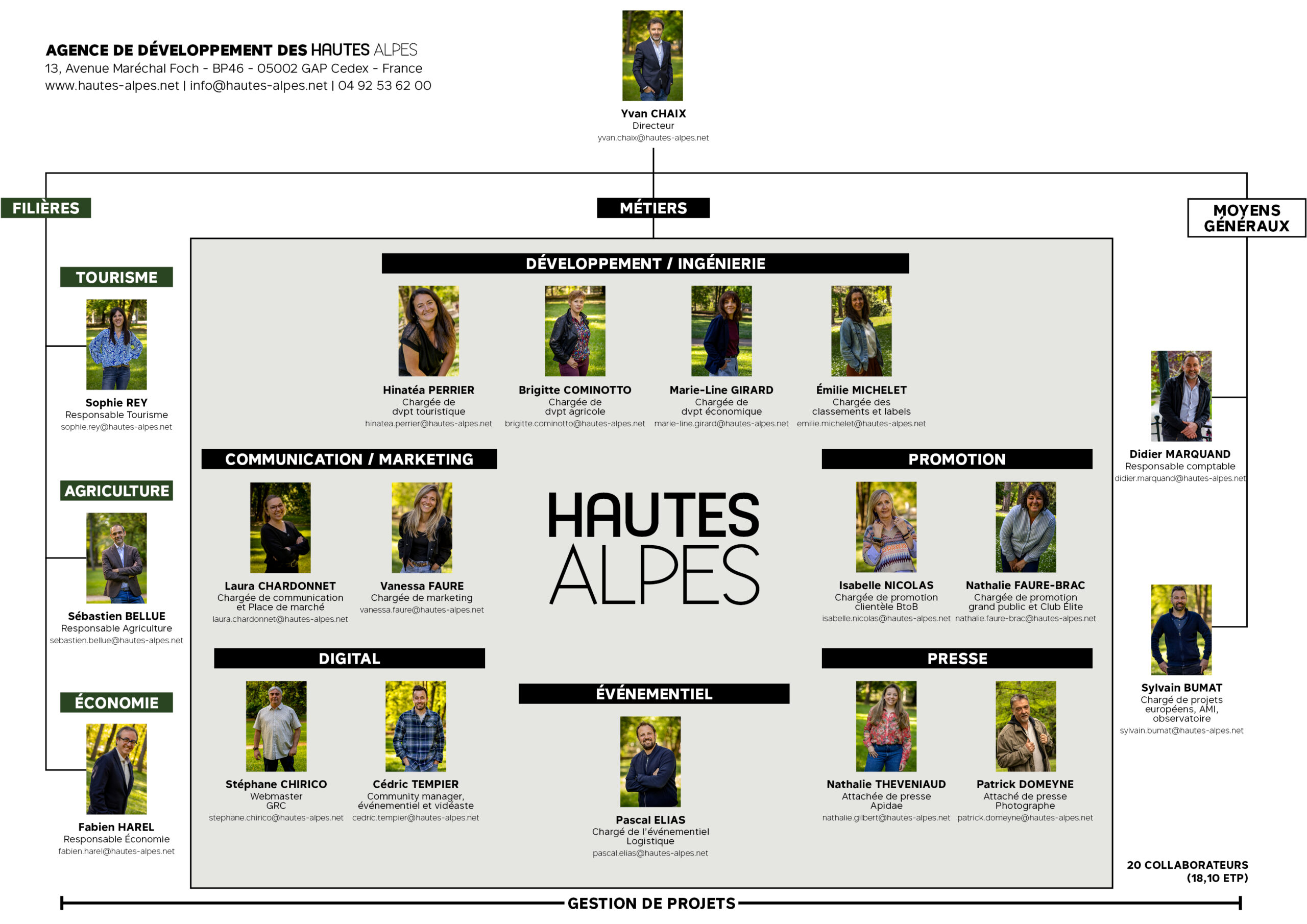 L’Agence de Développement est une structure atypique, un trait d’union entre collectivités et entreprises. Nous œuvrons à vos côtés, en tenant à distance les chicaneries, pour encourager les dynamiques collectives, structurer les filières, soutenir l’activité, renforcer l’attractivité des entreprises et des territoires, faire rayonner les Hautes-Alpes. Nous le faisons avec clairvoyance quand le changement climatique malmène milieux naturels et activités humaines, en encourageant les transitions, en recherchant sans fin un point d’équilibre entre préservation et valorisation d’une nature d’exception, notre plus grande richesse, pour continuer à entreprendre et vivre ici.