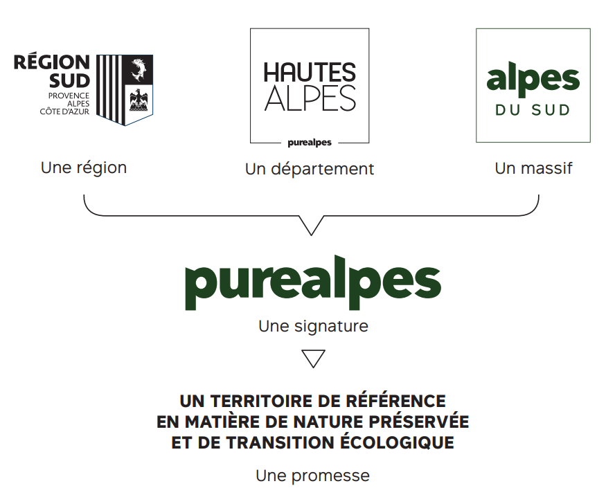 In 2017 werd een nieuwe dynamiek opgestart door de regio en het Regionaal Comité voor Toerisme Provence-Alpes-Côte d’Azur om het massief van de zuidelijke Alpen (Alpes de Haute-Provence, Hautes-Alpes en Alpes-Maritimes) te promoten via een authentieke en differentiërende positioneringsstrategie, gebaseerd op een iconische naam en een sterke verbeelding, die van de Alpen, maar ook op een krachtig DNA, gekapitaliseerd via de merkhandtekening: Purealpes.