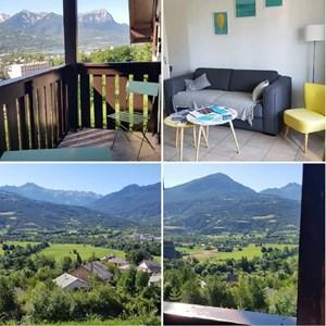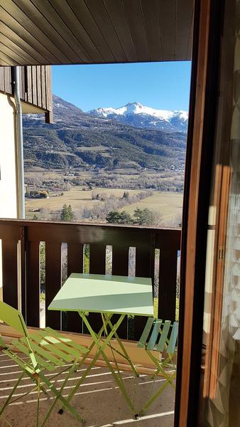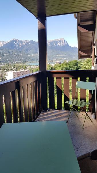 Mijn balkon biedt uitzicht op de vallei en onze bergen. Het meubilair geeft je de mogelijkheid om aangename momenten door te brengen.