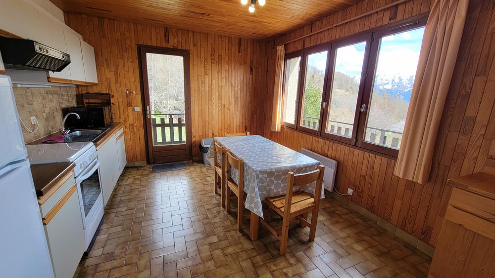 Dans une résidence calme située en bas de la station, grand appartement situé au rez-de-chaussée surélevé (accès : 1 étage à descendre) composé de :