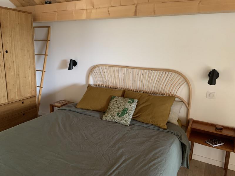 - Espace en mezzanine agencé en troisième chambre, incluant un lit de 160 cm avec un rideau pour préserver l'intimité.