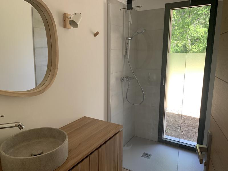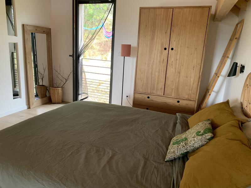 - Deux chambres équipées d'un lit double de 140 cm, offrant un accès direct à l'extérieur.