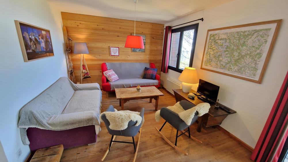 CHALET 'Les Carlines' - 9 personnes - 4 chambres - Centre de la station, pied des pistes - 2 Balcons Sud avec vue - Jardinet.