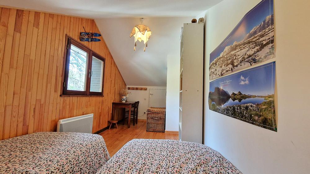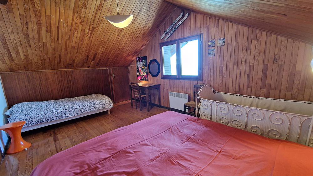 - Une chambre mansardée avec 2 lits 1 place - un bureau.
