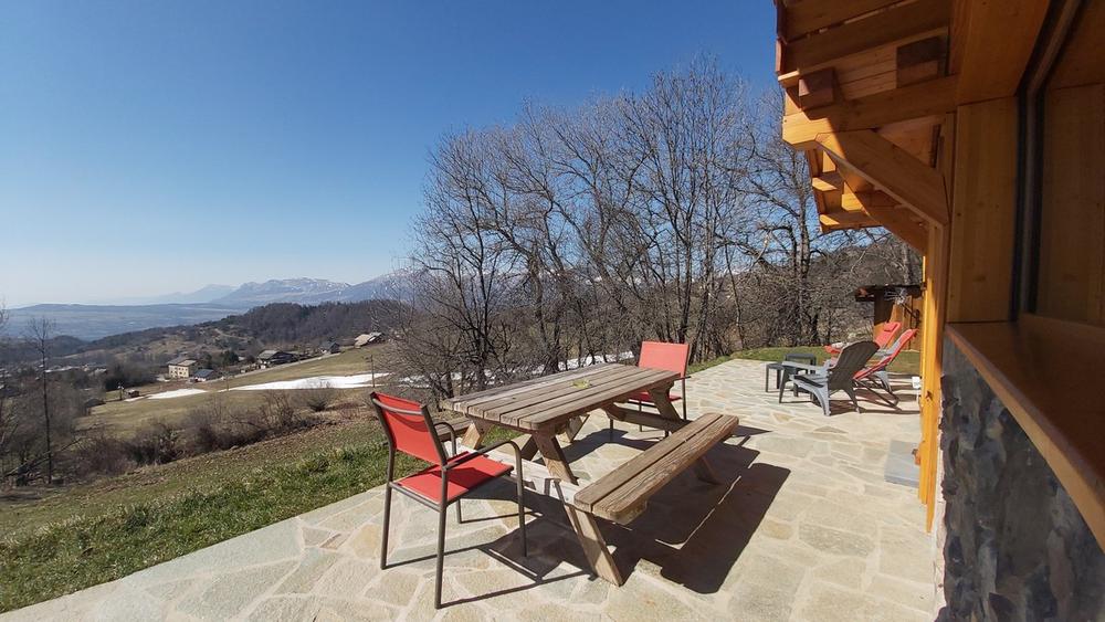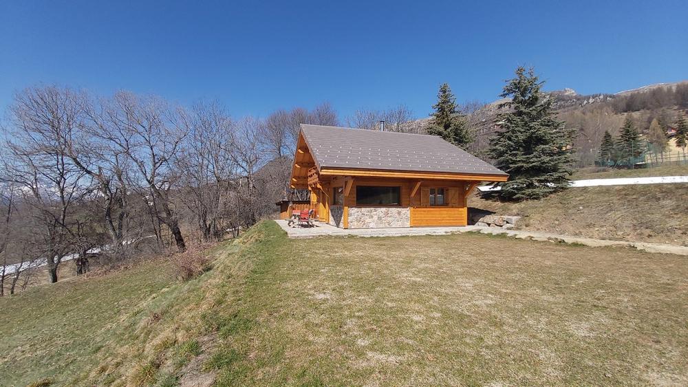 Chalet individuel sans vis à vis. Belle vue sur la vallée. A 8 km des commerces du village de Chabottes. Pistes de ski à 20m. Exposition du levé au couché du soleil. Grande terrasse tout autour du chalet.
