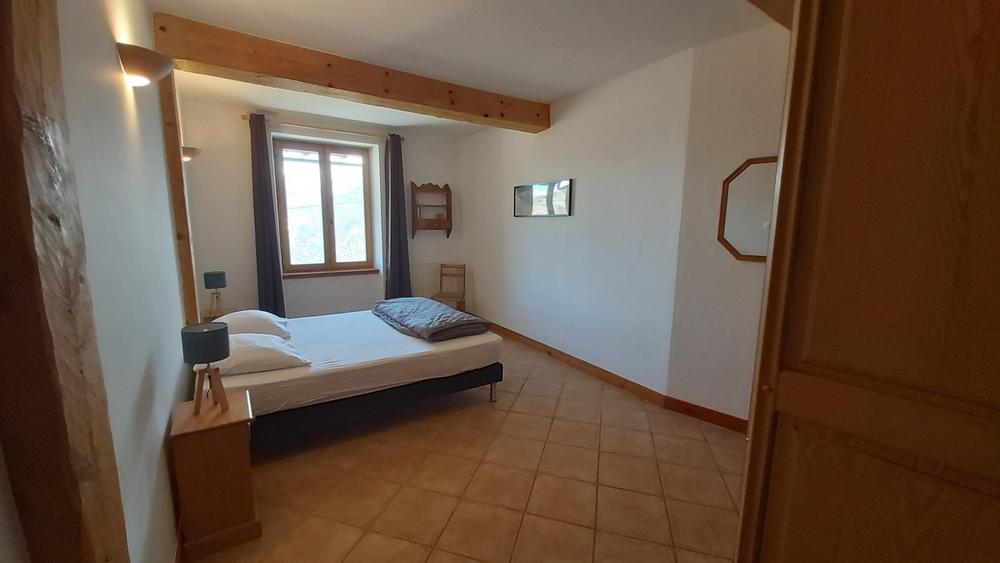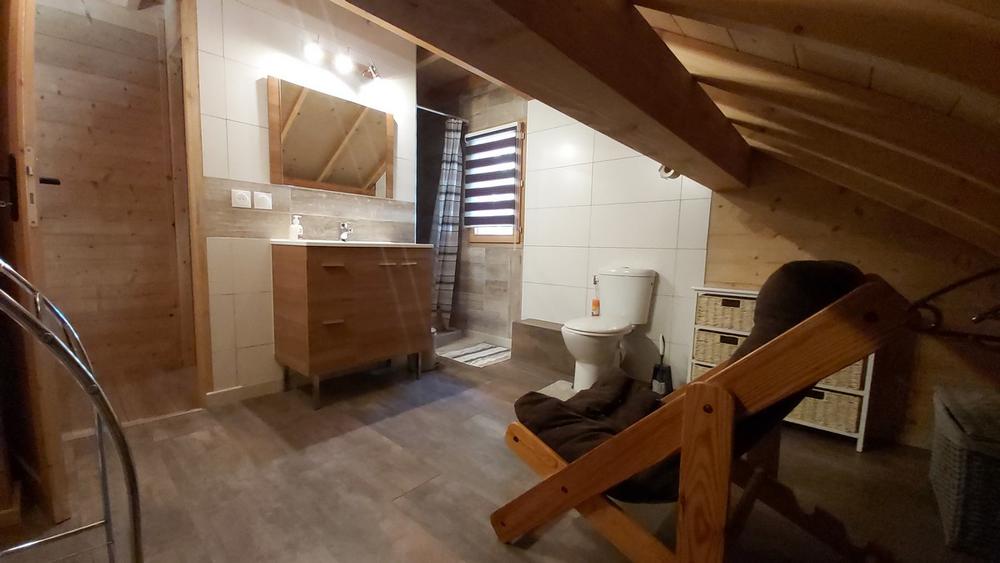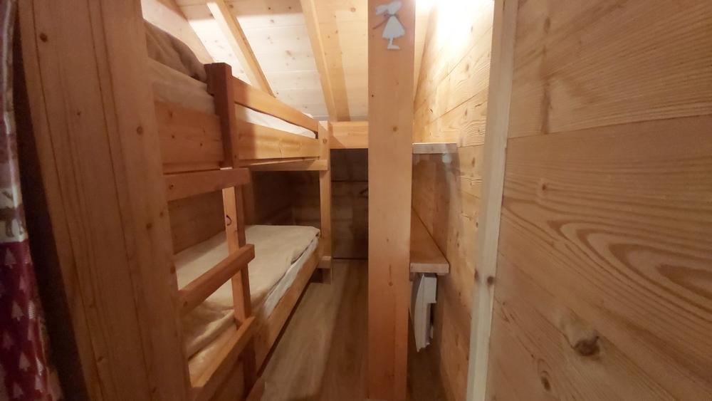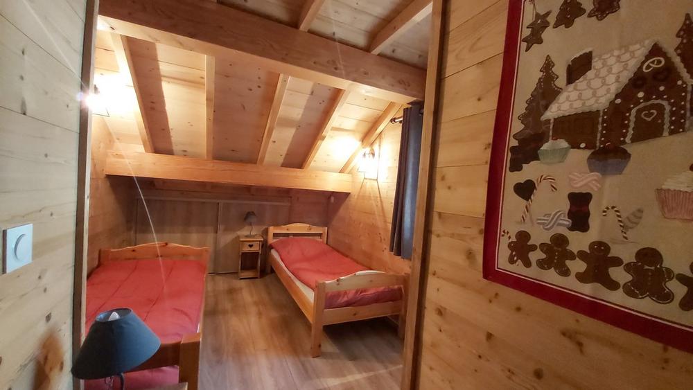 A l'étage, deux chambres avec des grands lits, une chambre avec deux petits lits et un coin montange avec des lits superposés.