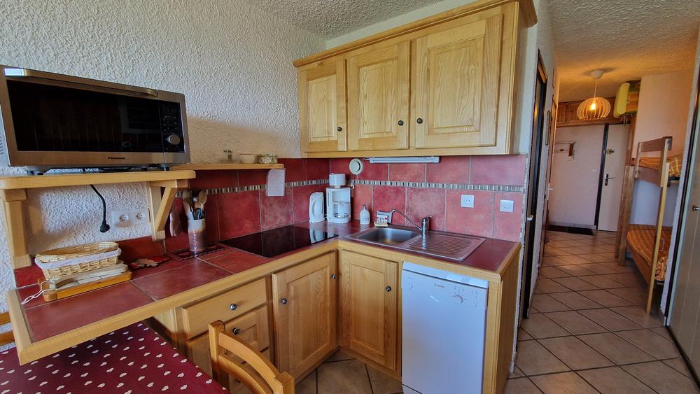 Dans une résidence au cœur de la station, studio style montagne situé au rez-de-chaussée composé de :