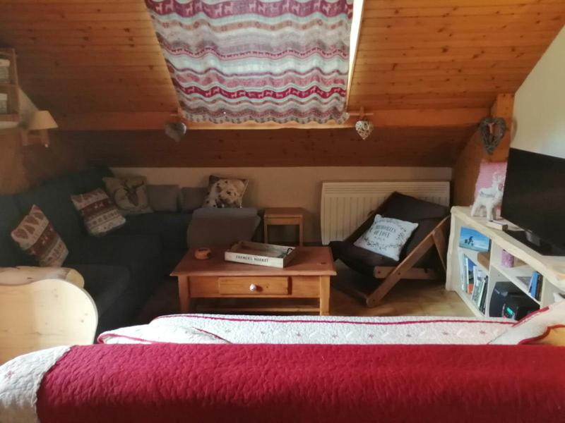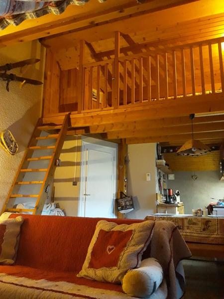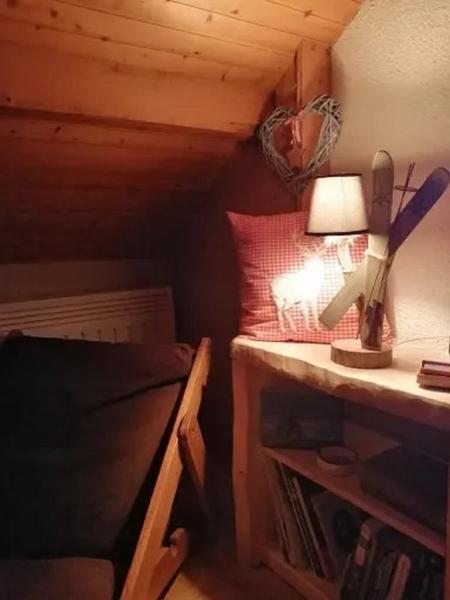 La mezzanine accueille un coin nuit cosy, parfait pour profiter d’un repos paisible dans une ambiance montagnarde inspirante.