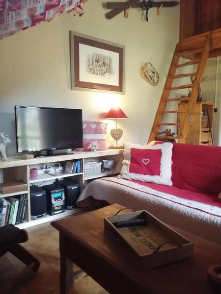 Appartement cosy avec coin montagne, salle de bain et WC séparés. Magnifique séjour avec cuisine équipée, ouvrant sur un balcon vue montagne. Mezzanine avec coin nuit chaleureux. Idéal pour un séjour détente au cœur des Alpes.